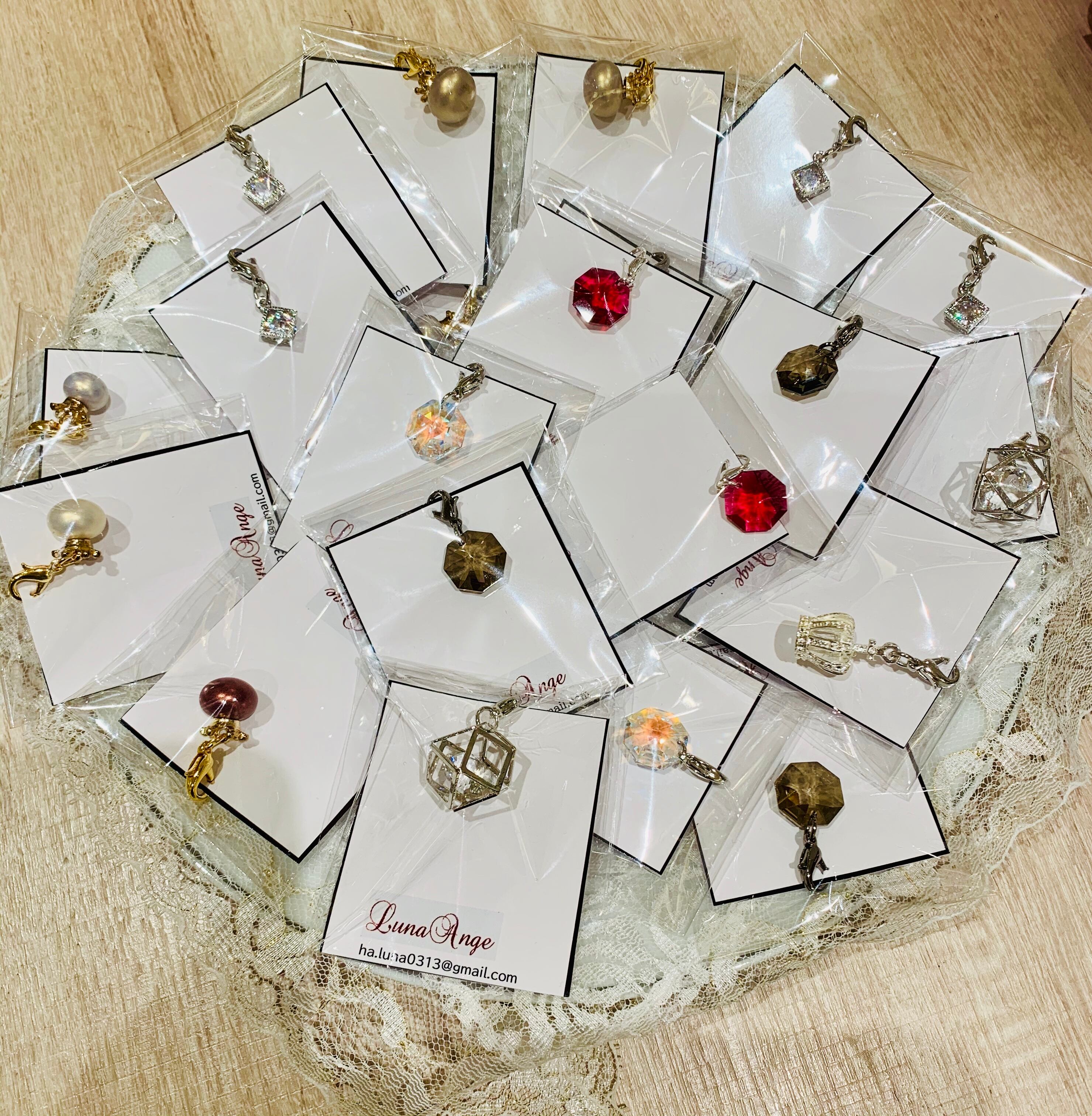 チャームを2つつけるとイヤリングのようにも見えて可愛いですよ。