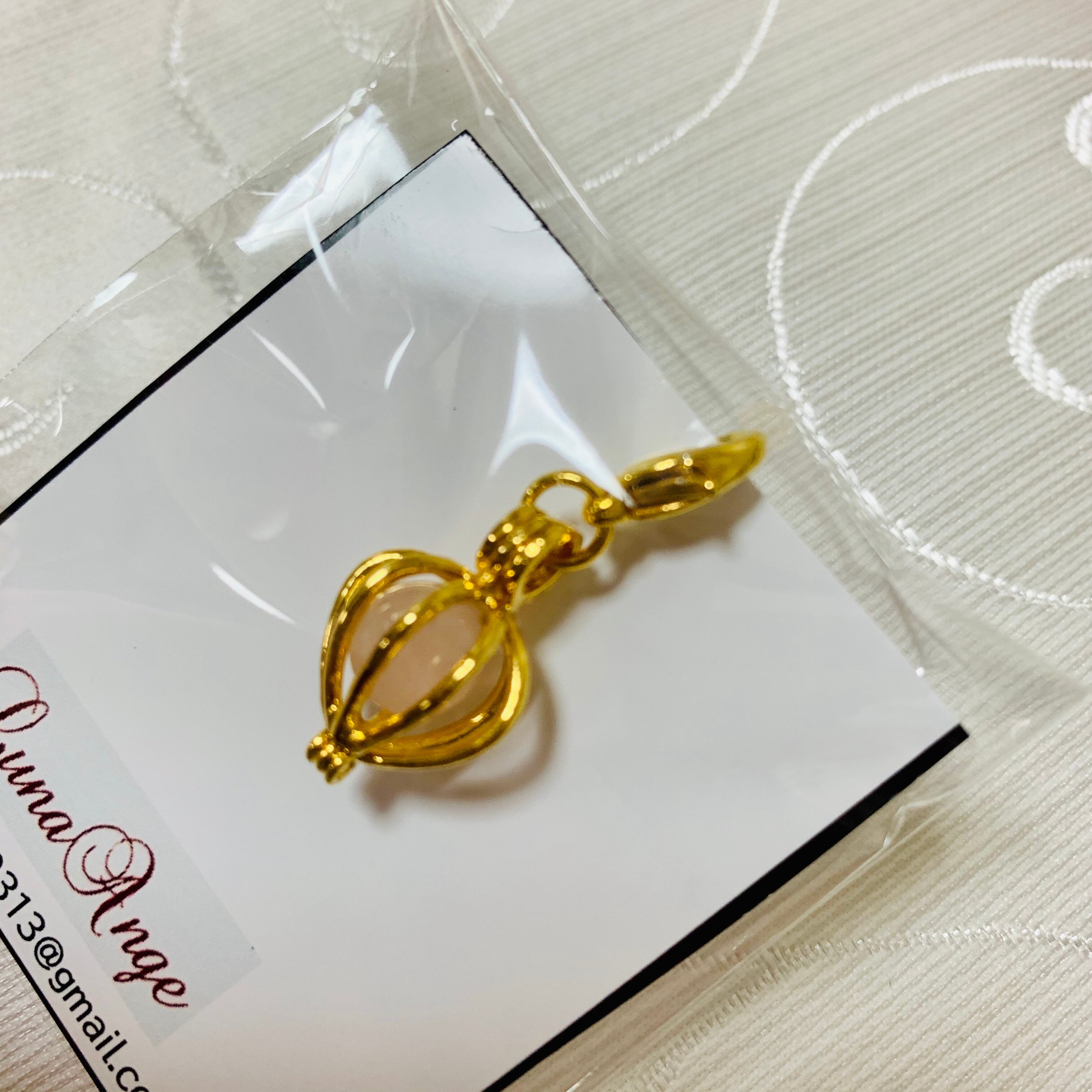 女子力アップのローズクォーツが中に入ったチャーム。