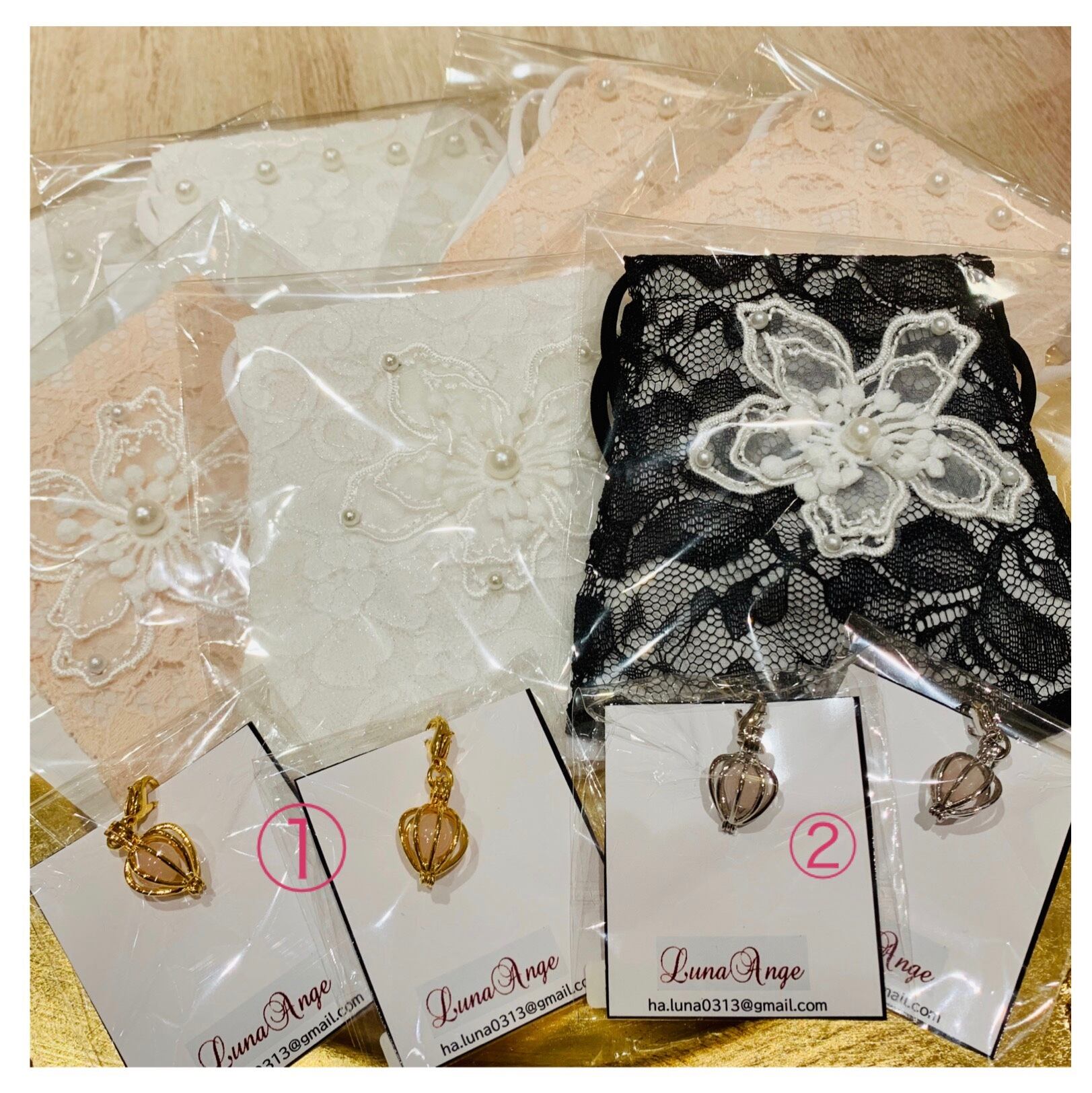 シンプルなマスクにもつけるだけでワンポイントに。